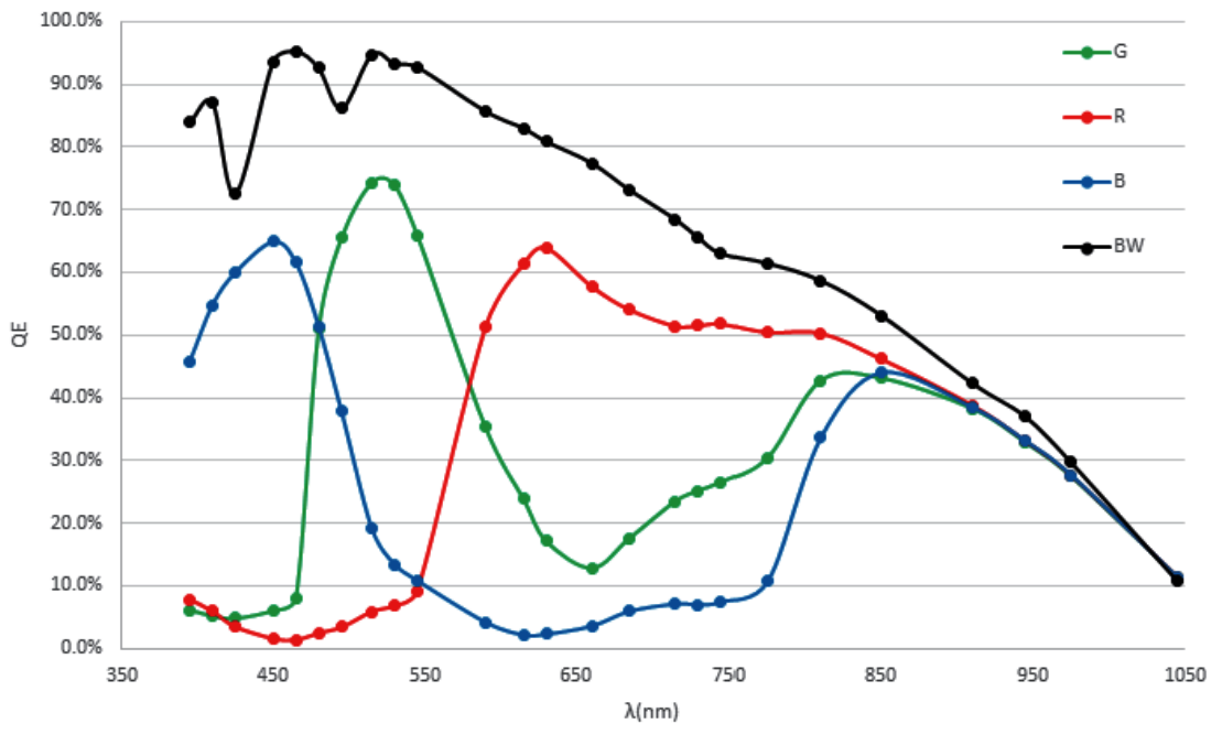 灵敏度 BW:320 / RGB:145@G V/lux.s